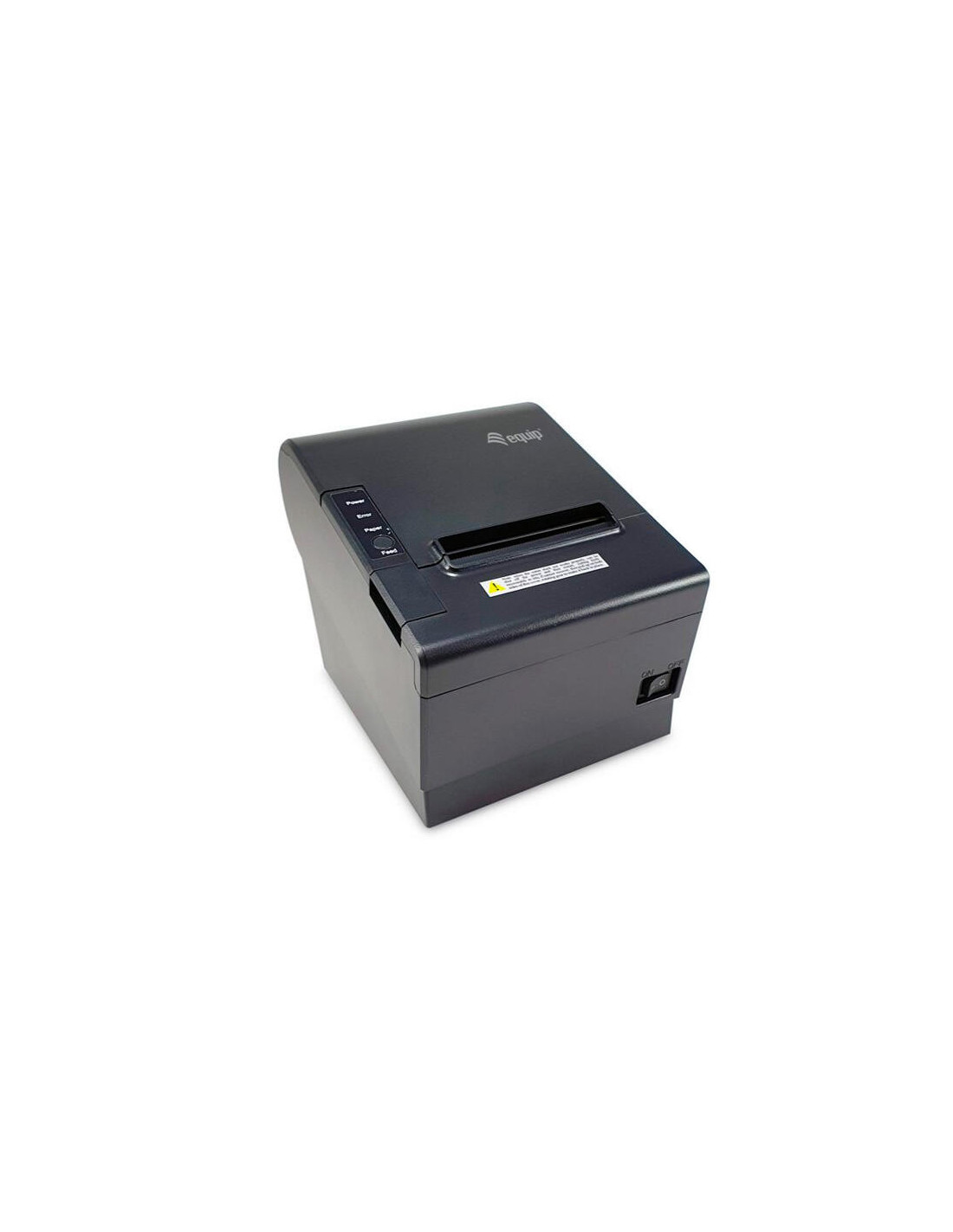 Impressora térmica POS Equip 351003, com corte de papel automático e manual, largura de impressão de 80mm e interfaces USB, Ethernet e Serial. Velocidade de impressão de 150mm/s. Inclui adaptador de corrente, cabo USB, rolo de papel térmico e drivers. Garantia de 36 meses.