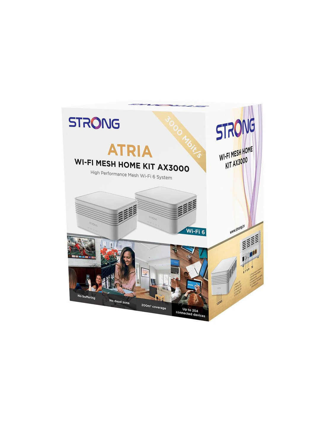 O sistema Mesh Strong MESHKITAX3000 é uma solução Wi-Fi de alta performance para cobrir a sua casa com uma rede estável e rápida. Este kit inclui duas unidades internas que trabalham em conjunto para criar uma rede Wi-Fi 6 (802.11ax) de banda dupla (2,4 GHz e 5 GHz), oferecendo velocidades de até 2976 Mbps. É ideal para casas maiores ou com muitos dispositivos conectados. A configuração é simples e intuitiva, e a tecnologia Mesh garante uma cobertura uniforme e sem interrupções.