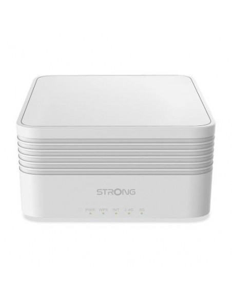 O Strong MESHTRIAX3000 é um sistema Wi-Fi Mesh tri-pack que oferece cobertura Wi-Fi estável e de alta velocidade em toda a sua casa. Com tecnologia Wi-Fi 6 (802.11ax) de banda dupla (2,4 GHz e 5 GHz), este sistema garante velocidades de até 2402 Mbps. Os pontos de acesso possuem antenas internas e são fáceis de configurar. Inclui 3 unidades, permitindo expandir a cobertura Wi-Fi. Design compacto e elegante em branco.