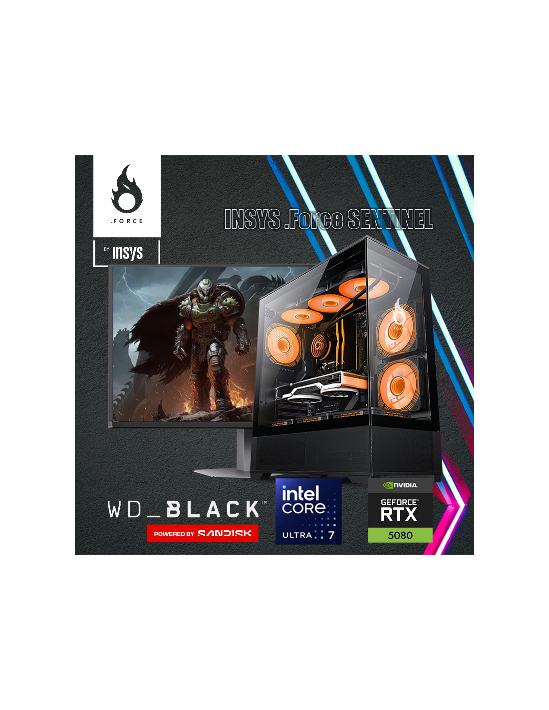 PC Gaming INSYS SENTINEL Ultra 7 RTX5080 32GB 1TB SSD Wi-Fi 7 - W11