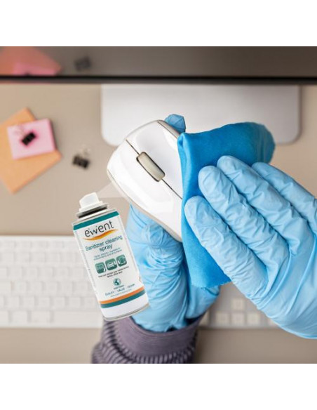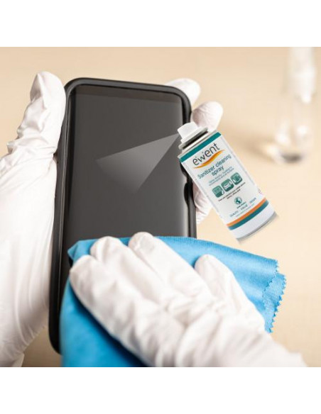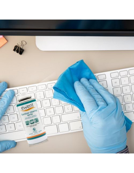 O Spray Desinfetante Ewent é uma solução de limpeza e desinfecção multi-superfícies, com um volume de 400ml.  Pode ser utilizado em diversos equipamentos e superfícies, incluindo telemóveis, tablets, tecidos (como máscaras cirúrgicas), mesas de escritório, cadeiras, ferramentas de trabalho, interiores de automóveis, computadores e teclados. A sua fórmula especial não só limpa e desinfecta, como também elimina odores desagradáveis, mantendo as superfícies tratadas desinfetadas por mais tempo. O seu formato em spray facilita a aplicação em diferentes áreas. É um produto prático e eficaz para manter os seus equipamentos e espaços de trabalho limpos e higienizados.