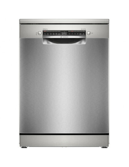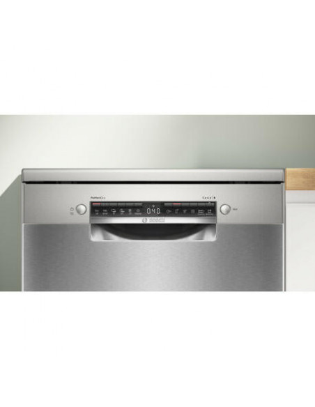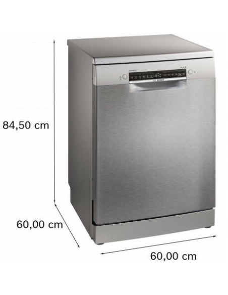 Bosch Serie 6 SMS6ZCI10E. Local de colocação: Independente, Tamanho do produto: Tamanho completo (60 cm), Cor da porta: Aço inoxidável. Número de talheres: 14 talheres, Classe de emissão de ruído: B, Nível de ruído: 40 dB. Ajuste dos pés: 2 cm, Aplicações de controlo suportadas: Bosch Home Connect. Classe de eficiência energética: B, Consumo de água por ciclo: 9 l, Consumo de energia por 100 ciclos: 65 kWh. Largura: 600 mm, Profundidade: 600 mm, Altura: 845 mm