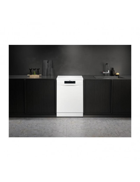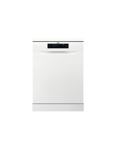 AEG FFB33607ZW. Local de colocação: Independente, Tamanho do produto: Tamanho completo (60 cm), Cor da porta: Branco. Número de lugares: 13 espaços, Classe de emissão de ruído: C, Nível de ruído: 46 dB. Classe de eficiência energética: D, Consumo de água por ciclo: 9,9 l, Consumo de energia por 100 ciclos: 84 kWh. Largura: 598 mm, Profundidade: 622 mm, Altura: 850 mm ;