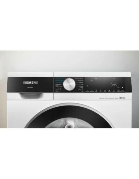 Siemens iQ500 WN44G2A0ES. Tipo de carga: Carregamento frontal, Local de colocação: Independente, Cor do produto: Branco. Capacidade avaliada (lavagem e secagem): 6 kg, Velocidade máxima de centrifugação: 1400 RPM, Classe de centrifugação: B. Comprimento do fio: 2,1 m. Classe de eficiência energética (lavagem): A, Classe de eficiência energética (lavagem e secagem): D, Consumo de água de lavagem: 52 l. Tecnologias Siemens (tratamento de roupa): i-Dos, iQdrive, waterPerfect Plus