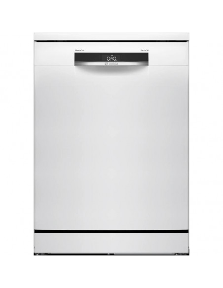 Bosch Serie 6 SMS6ECW15E. Local de colocação: Independente, Tamanho do produto: Tamanho completo (60 cm), Cor da porta: Branco. Número de talheres: 14 talheres, Classe de emissão de ruído: B, Nível de ruído: 42 dB. Aplicações de controlo suportadas: Bosch Home Connect. Classe de eficiência energética: A, Consumo de água por ciclo: 9 l, Consumo de energia por 100 ciclos: 54 kWh. Largura: 600 mm, Profundidade: 600 mm, Altura: 845 mm ;