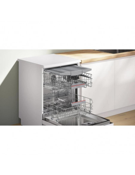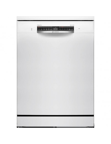 Bosch Serie 4 SMS4ECW28E. Local de colocação: Independente, Tamanho do produto: Tamanho completo (60 cm), Cor da porta: Branco. Número de talheres: 14 talheres, Classe de emissão de ruído: B, Nível de ruído: 42 dB. Ajuste dos pés: 2 cm, Aplicações de controlo suportadas: Bosch Home Connect. Classe de eficiência energética: A, Consumo de água por ciclo: 9 l, Consumo de energia por 100 ciclos: 54 kWh. Largura: 600 mm, Profundidade: 600 mm, Altura: 845 mm ;