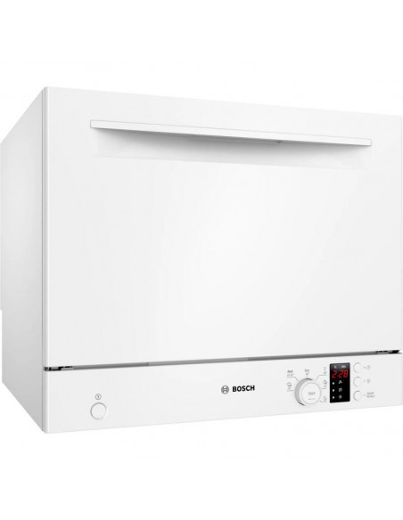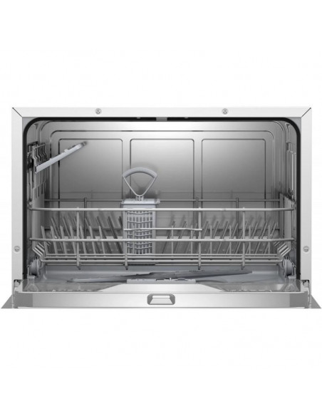 Bosch Serie 2 SKS2ITW00E. Local de colocação: Balcão, Tamanho do produto: Compacto, Cor da porta: Branco. Número de talheres: 6 talheres, Classe de emissão de ruído: C, Nível de ruído: 49 dB. Classe de eficiência energética: E, Consumo de água por ciclo: 8 l, Consumo de energia por 100 ciclos: 55 kWh. Largura: 551 mm, Profundidade: 500 mm, Altura: 450 mm. Peso da embalagem: 23,3 kg ;