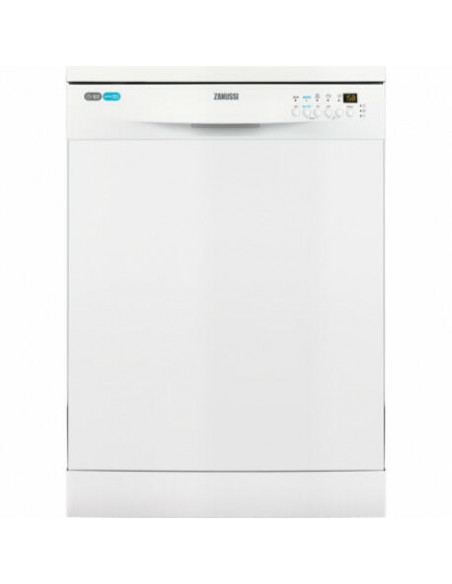 Zanussi ZDF26004WA. Design da caixa: Independente, Tamanho do produto: Tamanho completo (60 cm), Cor da porta: Branco. Número de lugares: 13 posições, Nível de ruído Lc IEC: 48 dB, Classe de secagem: A. Ajuste dos pés: 1 cm. Classe de eficiência energética: A+, Consumo de energia por ciclo: 1,039 kWh, Consumo de água por ciclo: 11 l. Largura do produto: 600 mm, Profundidade da Unidade: 625 mm, Altura da Unidade: 850 mm