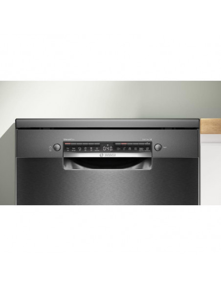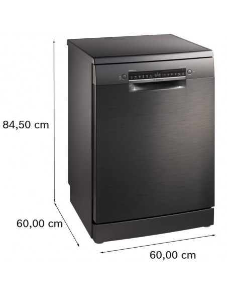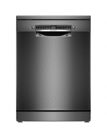 Bosch Serie 4 SMS4EMC06E. Local de colocação: Independente, Tamanho do produto: Tamanho completo (60 cm), Cor da porta: Preto. Número de talheres: 14 talheres, Classe de emissão de ruído: B, Nível de ruído: 42 dB. Ajuste dos pés: 2 cm, Aplicações de controlo suportadas: Bosch Home Connect. Classe de eficiência energética: B, Consumo de água por ciclo: 9 l, Consumo de energia por 100 ciclos: 65 kWh. Largura: 600 mm, Profundidade: 600 mm, Altura: 845 mm ;