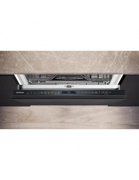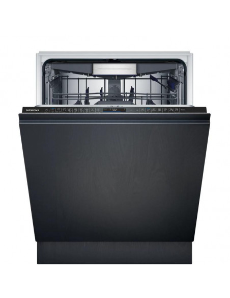 Siemens iQ700 SN97TX02CE. Local de colocação: Completamente embutido, Tamanho do produto: Tamanho completo (60 cm), Cor do painel de controlo: Preto, Aço inoxidável. Número de talheres: 14 talheres, Classe de emissão de ruído: B, Nível de ruído: 42 dB. Ajuste dos pés: 6 cm, Aplicações de controlo suportadas: Siemens Home Connect. Classe de eficiência energética: A, Consumo de água por ciclo: 9,5 l, Consumo de energia por 100 ciclos: 54 kWh. Largura: 598 mm, Profundidade: 550 mm, Altura: 815 mm ;