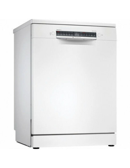 Bosch Serie 4 SMS4EMW06E. Local de colocação: Independente, Tamanho do produto: Tamanho completo (60 cm), Cor da porta: Branco. Número de lugares: 14 espaços, Classe de emissão de ruído: B, Nível de ruído: 42 dB. Ajuste dos pés: 2 cm, Aplicações de controlo suportadas: Bosch Home Connect. Classe de eficiência energética: B, Consumo de água por ciclo: 9 l, Consumo de energia por 100 ciclos: 65 kWh. Largura: 600 mm, Profundidade: 600 mm, Altura: 845 mm