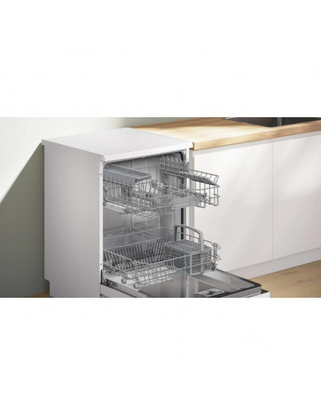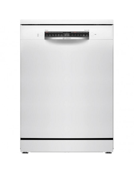Bosch Serie 4 SMS4HTW03E. Local de colocação: Independente, Tamanho do produto: Tamanho completo (60 cm), Cor da porta: Branco. Número de talheres: 13 talheres, Classe de emissão de ruído: C, Nível de ruído: 46 dB. Ajuste dos pés: 2 cm, Aplicações de controlo suportadas: Bosch Home Connect. Classe de eficiência energética: D, Consumo de água por ciclo: 9 l, Consumo de energia por 100 ciclos: 84 kWh. Largura: 600 mm, Profundidade: 600 mm, Altura: 845 mm ;