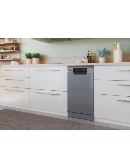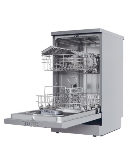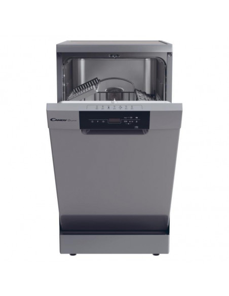 Candy Brava CDPH 2D1047S. Local de colocação: Independente, Tamanho do produto: Estreito (45 cm), Cor da porta: Aço inoxidável. Número de talheres: 10 talheres, Classe de emissão de ruído: C, Nível de ruído: 47 dB. Classe de eficiência energética: E, Consumo de água por ciclo: 9 l, Consumo de energia por 100 ciclos: 75 kWh. Largura: 448 mm, Profundidade: 605 mm, Altura: 846 mm. Comprimento da embalagem: 510 mm, Profundidade da embalagem: 631 mm, Altura da embalagem: 631 mm. ;