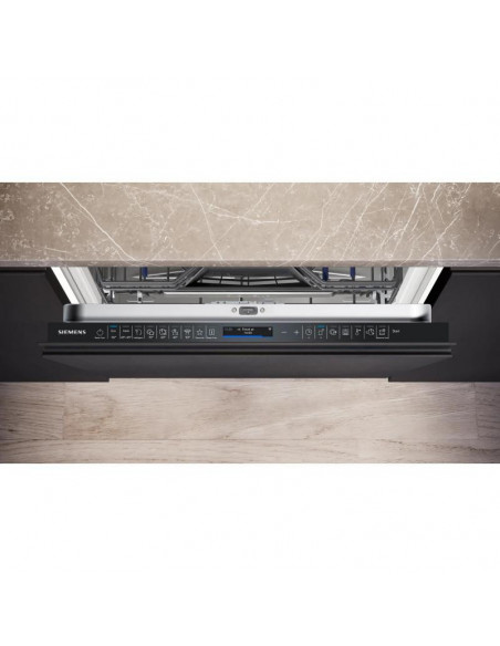 Siemens iQ700 SN87TX02CE. Local de colocação: Completamente embutido, Tamanho do produto: Tamanho completo (60 cm), Cor do painel de controlo: Preto. Número de talheres: 14 talheres, Classe de emissão de ruído: B, Nível de ruído: 42 dB. Classe de eficiência energética: A, Consumo de água por ciclo: 9,5 l, Consumo de energia por 100 ciclos: 54 kWh. Largura: 598 mm, Profundidade: 550 mm, Altura: 815 mm ;
