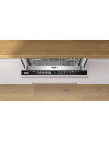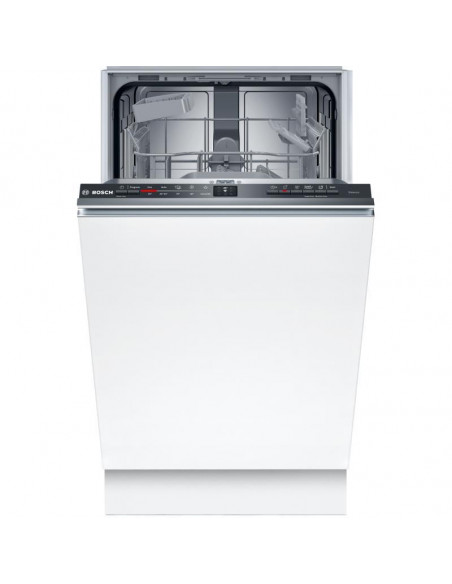 Bosch Serie 2 SPV2HKX42E. Local de colocação: Completamente embutido, Tamanho do produto: Estreito (45 cm), Cor do painel de controlo: Preto, Aço inoxidável. Número de lugares: 10 espaços, Classe de emissão de ruído: C, Nível de ruído: 46 dB. Ajuste dos pés: 6 cm, Aplicações de controlo suportadas: Bosch Home Connect. Classe de eficiência energética: E, Consumo de água por ciclo: 8,9 l, Consumo de energia por 100 ciclos: 76 kWh. Largura: 448 mm, Profundidade: 550 mm, Altura: 815 mm ;