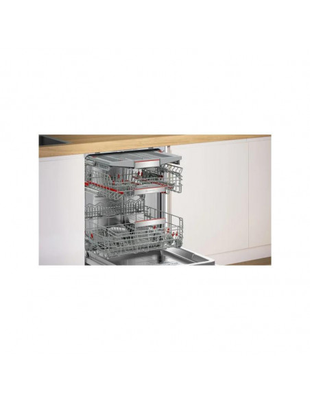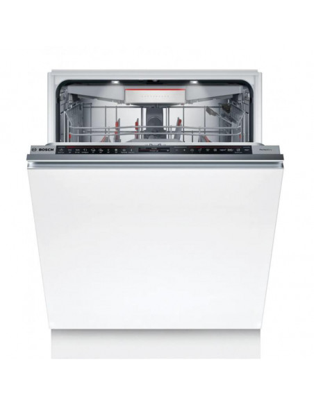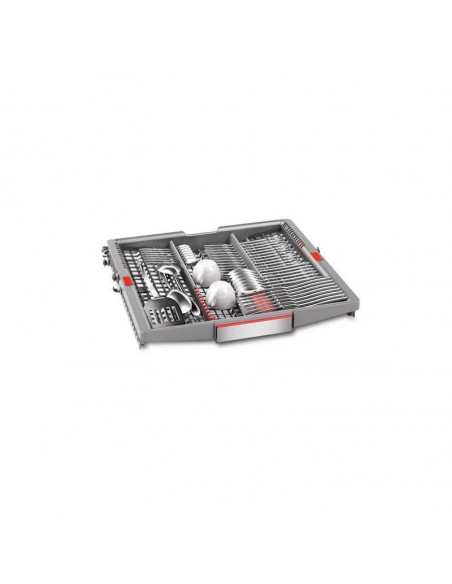 Bosch Serie 8 SMD8TCX04E. Local de colocação: Completamente embutido, Tamanho do produto: Tamanho completo (60 cm), Cor do painel de controlo: Preto. Número de talheres: 14 talheres, Classe de emissão de ruído: B, Nível de ruído: 42 dB. Ajuste dos pés: 6 cm, Funcionalidade das aplicações: Arranque à distância. Classe de eficiência energética: A, Consumo de água por ciclo: 9,5 l, Consumo de energia por 100 ciclos: 54 kWh. Largura: 598 mm, Profundidade: 550 mm, Altura: 815 mm ;