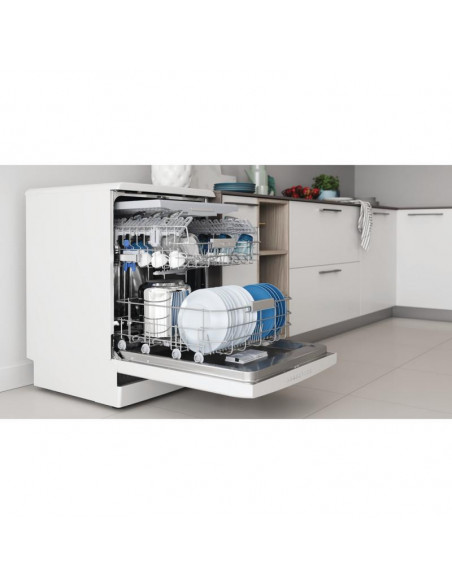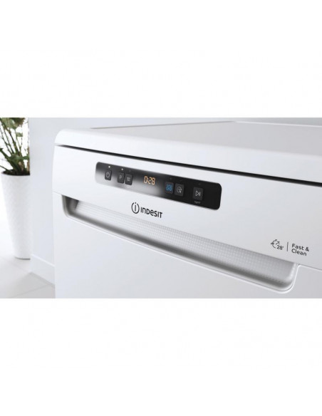 Indesit DFO 3T133 A F. Local de colocação: Independente, Tamanho do produto: Tamanho completo (60 cm), Cor da porta: Inox. Número de lugares: 14 espaços, Classe de emissão de ruído: B, Nível de ruído: 43 dB. Classe de eficiência energética: D, Consumo de água por ciclo: 9,5 l, Consumo de energia por 100 ciclos: 85 kWh. Largura: 600 mm, Profundidade: 590 mm, Altura: 850 mm ;