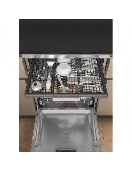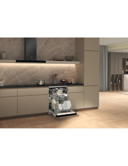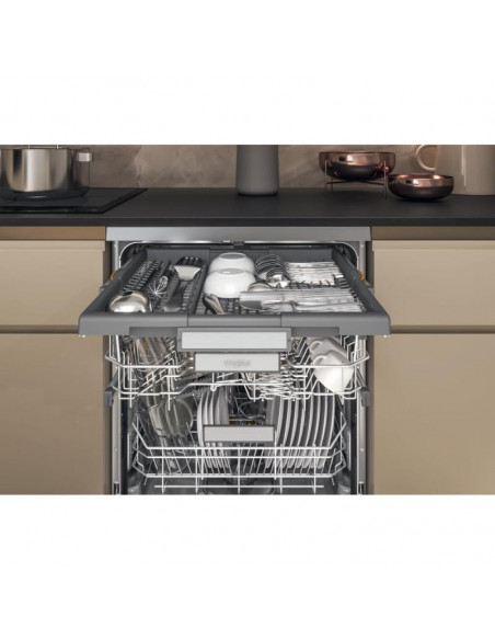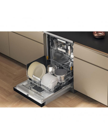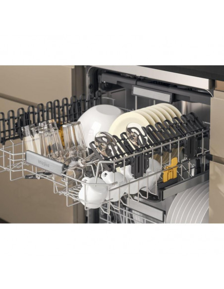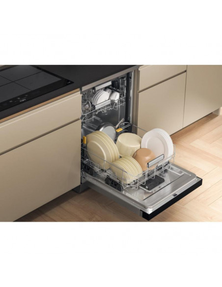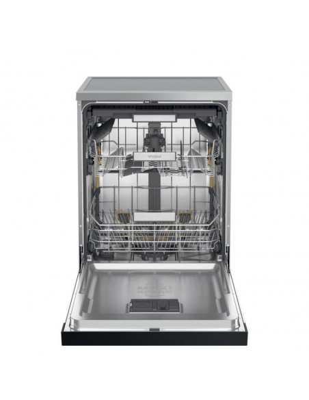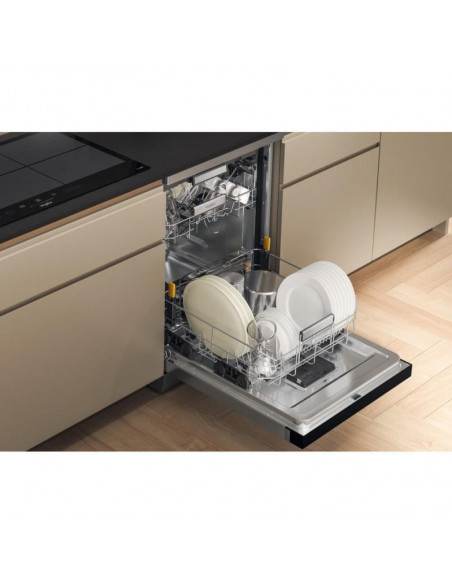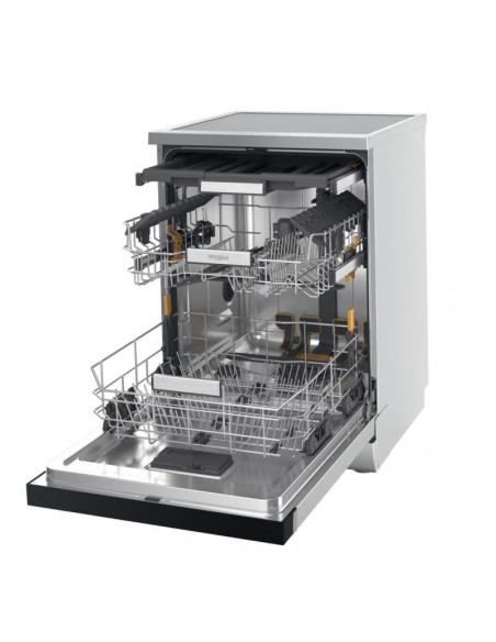 Whirlpool W7F HS51 X. Local de colocação: Independente, Tamanho do produto: Tamanho completo (60 cm), Cor da porta: Aço inoxidável. Número de lugares: 15 espaços, Classe de emissão de ruído: B, Nível de ruído: 41 dB. Classe de eficiência energética: B, Consumo de água por ciclo: 9,5 l, Consumo de energia por 100 ciclos: 65 kWh. Largura: 600 mm, Profundidade: 590 mm, Altura: 850 mm ;