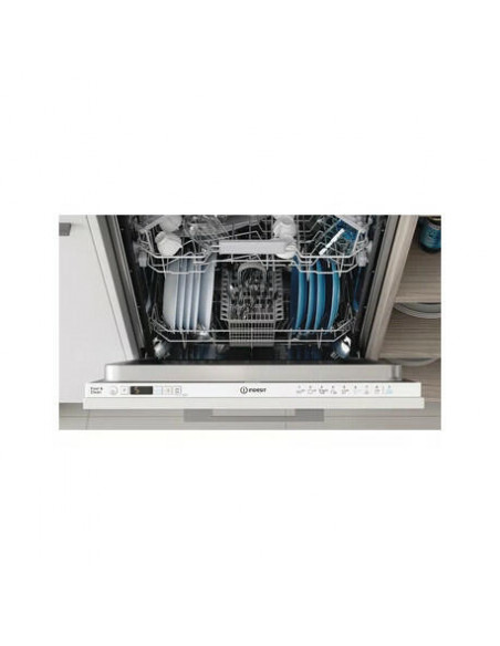 Indesit D2I HD524 A. Local de colocação: Completamente embutido, Tamanho do produto: Tamanho completo (60 cm), Cor da porta: Branco. Número de talheres: 14 talheres, Classe de emissão de ruído: B, Nível de ruído: 44 dB. Classe de eficiência energética: E, Consumo de água por ciclo: 9,5 l, Consumo de energia por 100 ciclos: 95 kWh. Largura: 598 mm, Profundidade: 555 mm, Altura: 820 mm