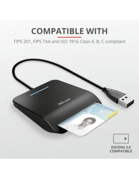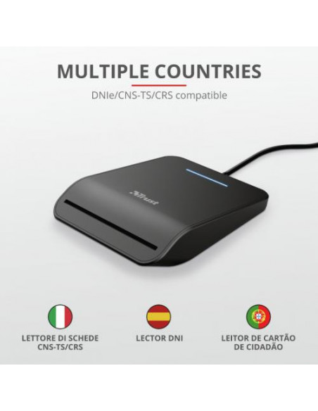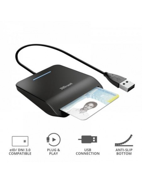 Em resumo, o leitor de cartões TRUST Primo oferece uma solução prática, eficiente e segura para a leitura de cartões inteligentes, combinando características funcionais com um design compacto e discreto.