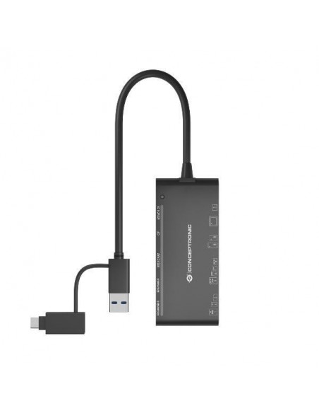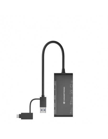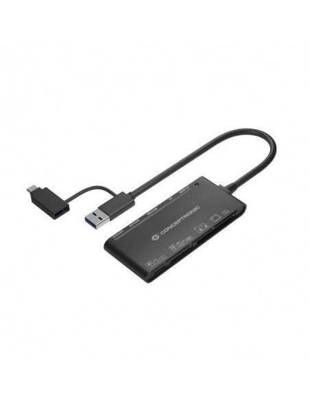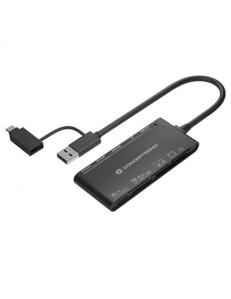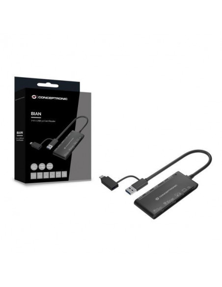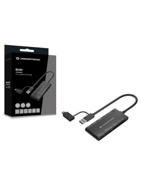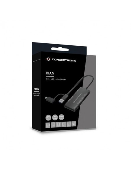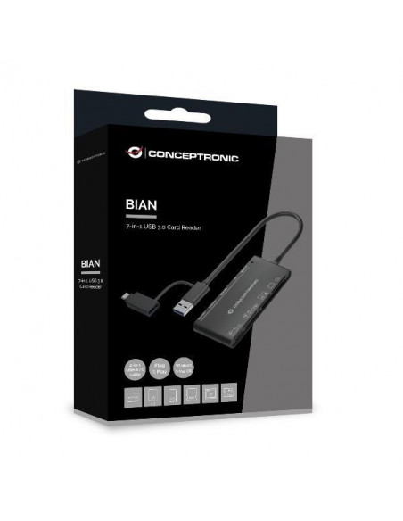 Leitor de Cartões Conceptronic BIAN03B: 7 em 1, USB 3.0 e USB-C