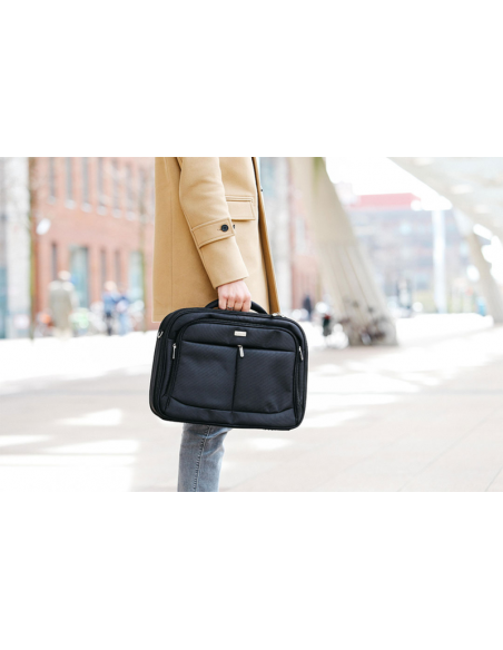 • Mala moderna e sofisticada para guardar e transportar um computador portátil de 16" e periféricos