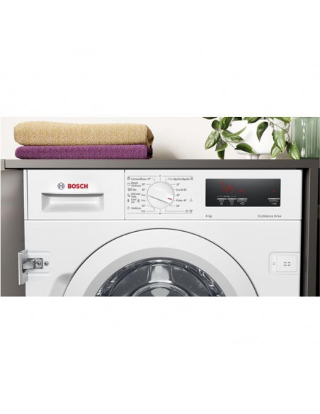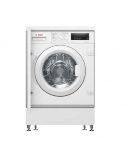 Bosch Serie 6 WIW28302ES. Tipo de carga: Carregamento frontal. Capacidade avaliada: 8 kg, Classe de centrifugação: B, Velocidade máxima de centrifugação: 1400 RPM. Cor do produto: Branco. Largura: 596 mm, Profundidade: 544 mm, Altura: 818 mm. Classe de eficiência energética: C ;