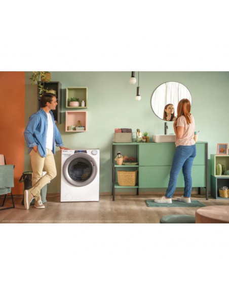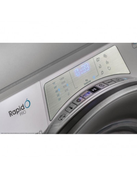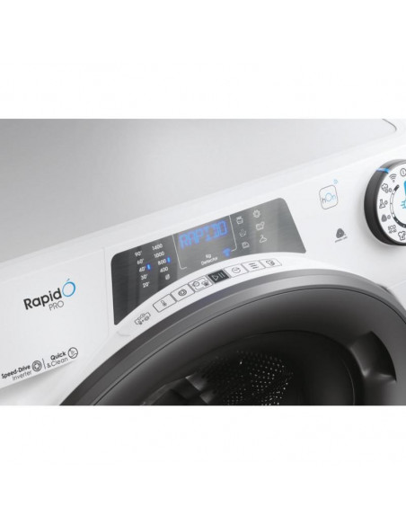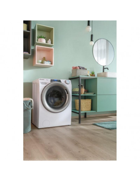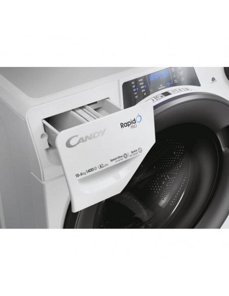 Candy RapidÓ PRO RPW 41066BWMR8-S. Tipo de carga: Carregamento frontal, Local de colocação: Independente, Cor do produto: Branco. Capacidade avaliada (lavagem e secagem): 6 kg, Velocidade máxima de centrifugação: 1400 RPM, Classe de centrifugação: B. Classe de eficiência energética (lavagem): A, Classe de eficiência energética (lavagem e secagem): D, Consumo de água de lavagem: 51 l. Tecnologias Candy (tratamento de roupa): Sistema Mix Power, Snap&Wash, Wi-Fi and Bluetooth, hOn App. Profundidade: 580 mm, Largura: 600 mm, Altura: 850 mm ;