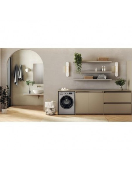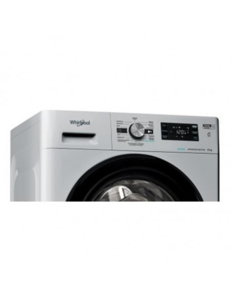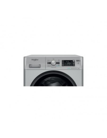 Whirlpool FFB 8489 SBV SPT. Tipo de carga: Carregamento frontal. Capacidade avaliada: 8 kg, Classe de centrifugação: B, Nível de ruído (spin): 78 dB, Velocidade máxima de centrifugação: 1400 RPM. Cor do produto: Prateado. Largura: 595 mm, Profundidade: 630 mm, Altura: 850 mm. Classe de eficiência energética: A ;