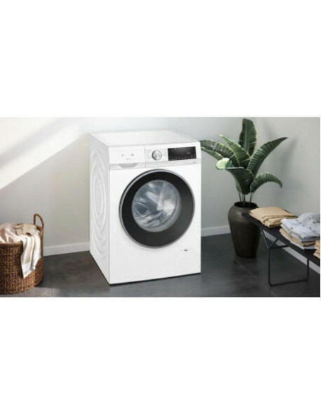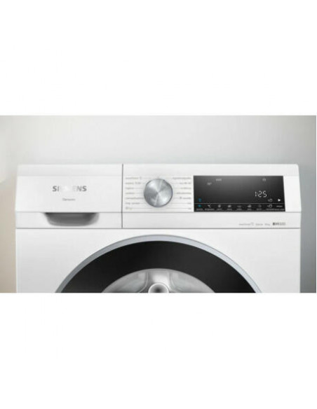 Siemens iQ500 WG56G2Z0ES. Tipo de carga: Carregamento frontal. Capacidade avaliada: 10 kg, Classe de centrifugação: A, Nível de ruído (spin): 74 dB, Velocidade máxima de centrifugação: 1600 RPM. Cor do produto: Branco. Largura: 598 mm, Profundidade: 590 mm, Altura: 845 mm. Classe de eficiência energética: A