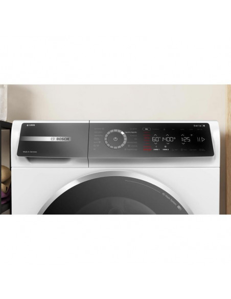 Bosch Serie 8 WGB244A0ES. Tipo de carga: Carregamento frontal. Capacidade avaliada: 9 kg, Classe de centrifugação: B, Nível de ruído (spin): 70 dB, Velocidade máxima de centrifugação: 1400 RPM. Cor do produto: Branco. Largura: 598 mm, Profundidade: 590 mm, Altura: 845 mm. Classe de eficiência energética: A ;