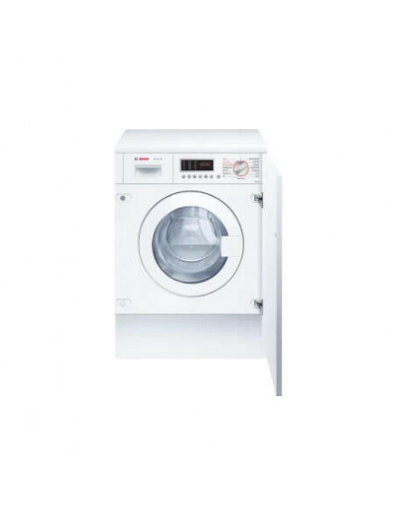 Bosch Serie 6 WKD28543ES. Tipo de carga: Carga superior, Local de colocação: Embutido, Cor do produto: Branco. Capacidade avaliada (lavagem e secagem): 4 kg, Velocidade máxima de centrifugação: 1400 RPM, Classe de centrifugação: B. Comprimento do fio: 2,2 m, Ajuste dos pés: 1,5 cm. Classe de eficiência energética (lavagem): E, Classe de eficiência energética (lavagem e secagem): E, Consumo de água de lavagem: 44 l. Profundidade: 584 mm, Largura: 595 mm, Altura: 820 mm