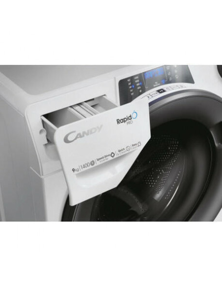RapidÓ PRO RapidÓ PRO é a máquina de lavar roupa mais rápida que lhe permite poupar tempo com excelentes resultados de lavagem: o inovador Motor Speed-Drive e ao sistema Quick & Clean permitem lavar uma carga completa em apenas 39 minutos sem perder o rendimento. Além disso, possui o novo Steam Hygiene Plus, o programa testado e aprovado pela BAF Authority, que garante uma lavagem profunda.