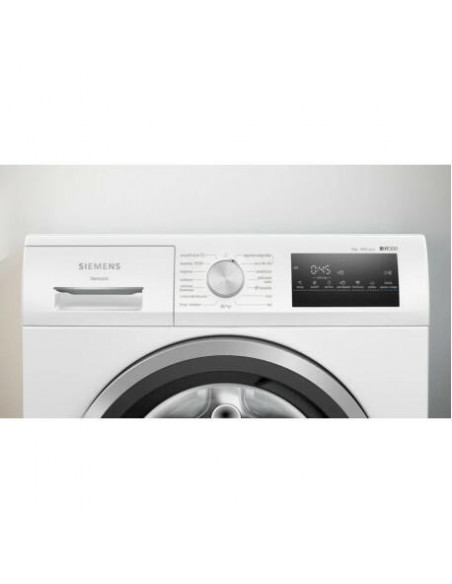 Siemens iQ300 WM14N290EP. Tipo de carga: Carregamento frontal. Capacidade avaliada: 9 kg, Classe de centrifugação: B, Nível de ruído (spin): 72 dB, Velocidade máxima de centrifugação: 1400 RPM. Cor do produto: Branco. Largura: 598 mm, Profundidade: 590 mm, Altura: 845 mm. Classe de eficiência energética : A