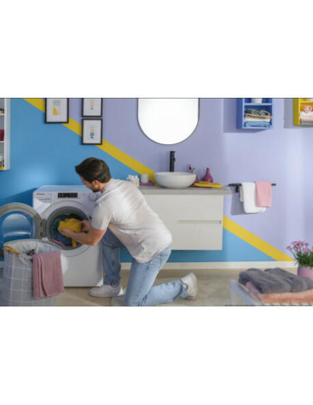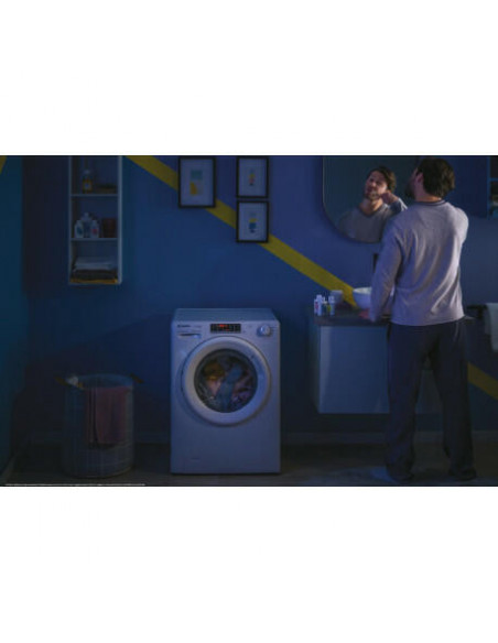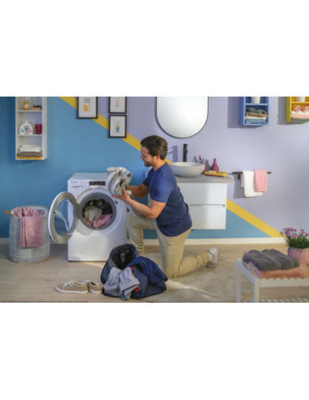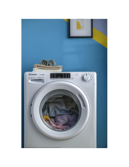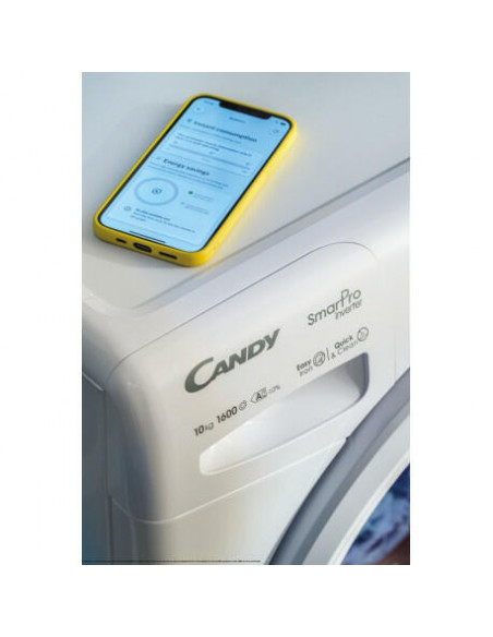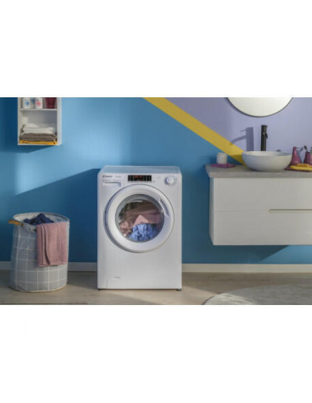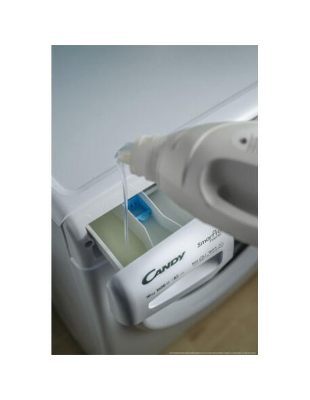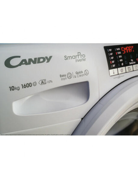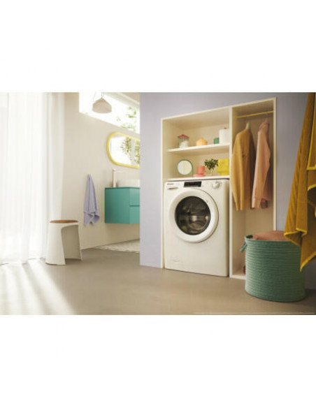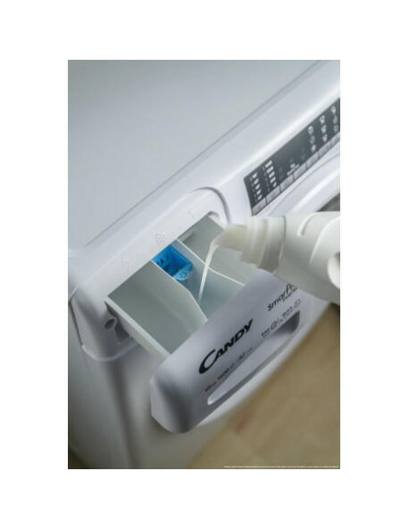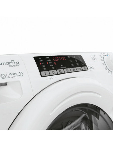 Candy Smart Pro Inverter CSO286TWM6/1-S. Tipo de carga: Carregamento frontal. Capacidade avaliada: 8 kg, Classe de centrifugação: B, Nível de ruído (spin): 74 dB, Velocidade máxima de centrifugação: 1200 RPM. Cor do produto: Branco. Largura: 600 mm, Profundidade: 540 mm, Altura: 850 mm. Classe de eficiência energética: A