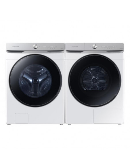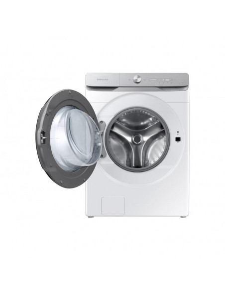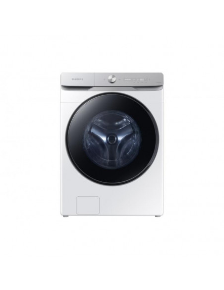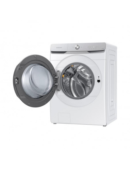 Samsung WF20DG8650BW. Tipo de carga: Carregamento frontal. Capacidade avaliada: 20 kg, Classe de centrifugação: B, Nível de ruído (spin): 76 dB, Velocidade máxima de centrifugação: 1000 RPM. Cor do produto: Branco. Largura: 686 mm, Profundidade: 875 mm, Altura: 984 mm. Classe de eficiência energética: A ;