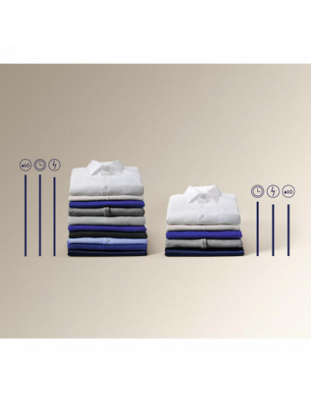 - O nosso sistema SensiCare ajusta-se à carga para evitar que as roupas sejam lavadas em excesso. Desta forma consegue a garantia de que as suas roupas mantêm o aspeto por muito mais tempo. Tecidos como novos durante mais tempo*