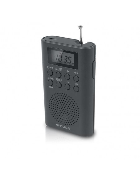 O M-03R inclui uma antena telescópica para uma receção otimizada do sinal de FM, bem como um altifalante incorporado que oferece uma qualidade de som satisfatória para qualquer ambiente. Alimentado por duas pilhas AAA (não incluídas), é económico e fácil de operar. Para além da sua função principal de rádio e relógio, este dispositivo é também ideal como complemento para viagens e atividades ao ar livre.