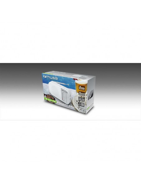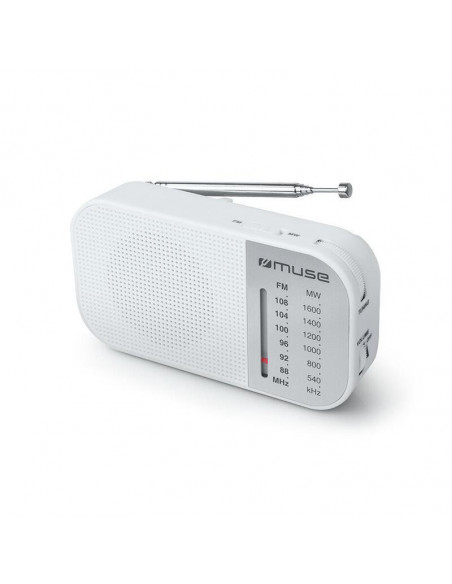 A rádio portátil analógica AM/FM Muse M-025 RW é uma opção compacta e prática para desfrutar da sua programação favorita. Com um design elegante em branco, inclui antena telescópica, controlo de volume rotativo e altifalante integrado. Funciona com 2 pilhas AAA.