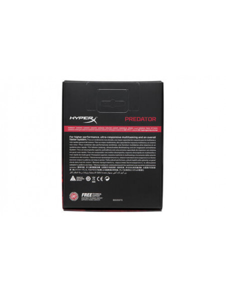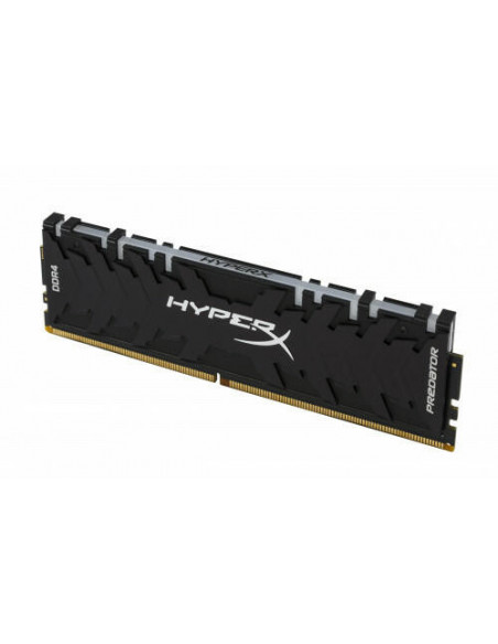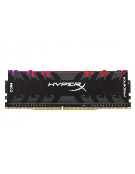Caza a tu presa con un estilo RGB impresionante y suave.\n\nDale al sistema el estilo RGB brillante y el rendimiento necesarios para estar en lo más alto de la cadena alimentaria con la HyperX® Predator DDR4 RGB*. Configúrala fácilmente** y presume de tener un aspecto exclusivo gracias a la tecnología de sincronización infrarroja de HyperX, que no necesita cables. La memoria Predator DDR4 RGB permanece fría y con un aspecto genial, gracias al disipador de calor negro agresivo diseñado para complementar su impresionante visualización de luces. Incrementa los fotogramas por segundo, mantén fluidas las retransmisiones y resalta la renderización de carretes con velocidades de hasta 4000 MHz y una baja latencia de CL15-CL19. Se encuentra disponible en módulos individuales de 8 GB-16 GB y kits de 2 y 4 con capacidades de 16 GB-64 GB. Los perfiles de Intel compatibles con XMP y certificados se han optimizado para los conjuntos de chips más recientes de Intel y son compatibles con muchos de los últimos conjuntos de chips de AMD; solo tienes que seleccionar el perfil y estarás listo para empezar. Probada al 100 % en fábrica a elevadas velocidades y con una garantía de por vida, la fiable Predator DDR4 RGB te ofrece lo mejor de ambos mundos: rendimiento extremo y máxima tranquilidad.\n\n* Las especificaciones de los módulos de overclocking extremo indicados en esta página pueden sobrepasar las capacidades del hardware de tu sistema. Se requiere una selección detenida de todos los componentes del sistema (por ejemplo, CPU, placa base y unidad de fuente de alimentación) para garantizar que estos módulos funcionen como está previsto. \n\nEstos kits se prueban y verifican exhaustivamente de forma interna para que funcionen a la velocidad indicada. Como copia de seguridad, incluimos un segundo perfil XMP a una velocidad de reloj más lenta para que sea posible alcanzar un gran rendimiento si tu sistema no puede soportar el perfil XMP incluido de máxima velocidad.\n\nEn esta página puedes encontrar, a modo de guía, los procesadores y la solución HyperX de placa base utilizados para obtener la certificación XMP de Intel: www.intel.com/content/www/us/en/gaming/extreme-memory-profile-xmp.html. Esto no garantiza la compatibilidad con la configuración de tu sistema. No podemos garantizar la compatibilidad con todos los sistemas, estos módulos se deberían instalar y usar bajo tu propio riesgo.\n\n**Iluminación personalizable con software de control RGB de la placa base. La compatibilidad de la personalización de RGB con software de terceros puede variar.