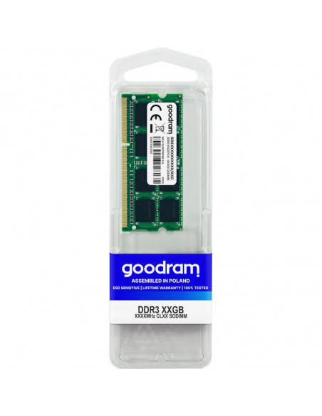 Memória RAM Goodram SODIMM DDR3 de 8GB, ideal para portáteis. Oferece desempenho confiável e compatibilidade com sistemas que utilizam memória DDR3.