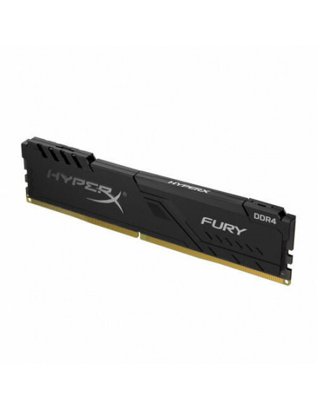 Da rienda suelta a tu estilo. Da rienda suelta a tu FURY.\n\nHyperX® FURY DDR4 impulsa enormemente el rendimiento de juegos, edición de vídeo y renderización con velocidades de hasta 3733 MHz. Esta económica actualización está disponible en velocidades de 2400 MHz-3733 MHz, latencias de CL15–19, capacidades de módulo único de 4 GB-32 GB y capacidades de kit de 16 GB-128 GB. Cuenta con overclocking automático de Plug N Play* a velocidades de 2400 MHz y 2666 MHz y es compatible con Intel XMP y AMD Ryzen. HyperX FURY DDR4 permanece fría gracias a su disipador de calor elegante y de bajo perfil. Totalmente probada a altas velocidades y respaldada por una garantía de por vida, se trata de una actualización sencilla y práctica para tu sistema Intel o AMD.\n\n- Diseño de disipador de calor de perfil bajo actualizado\n- Actualización de DDR4 rentable y de alto rendimiento\n- Compatible con XMP de Intel\n- Compatible con AMD Ryzen\n- Velocidades de hasta 3733 MhZ Y capacidad del kit de hasta 128 GB \n- Funcionalidad PLUG N PLAY A 2400 MHz y 2666 MHz*\n\n* La memoria HyperX Plug N Play funcionará en los sistemas DDR4 a la velocidad máxima permitida por la BIOS del sistema del fabricante. PnP no puede aumentar la velocidad de la memoria de sistema por encima de lo que permite la BIOS del fabricante. Los productos HyperX Plug N Play DDR4 son compatibles con las especificaciones XMP 2.0, por lo que es posible conseguir el overclocking habilitando el perfil XMP integrado.
