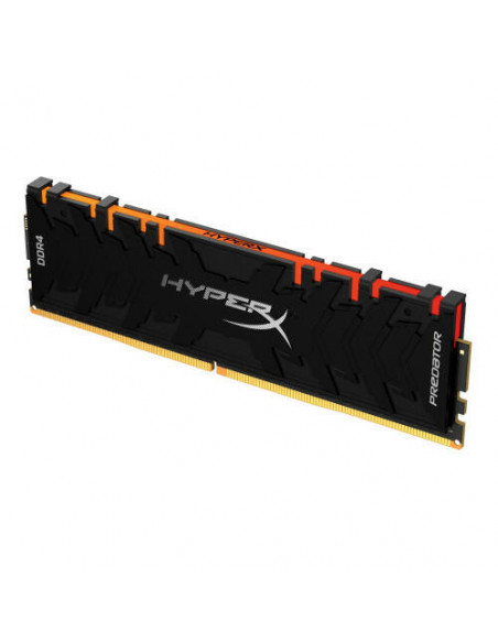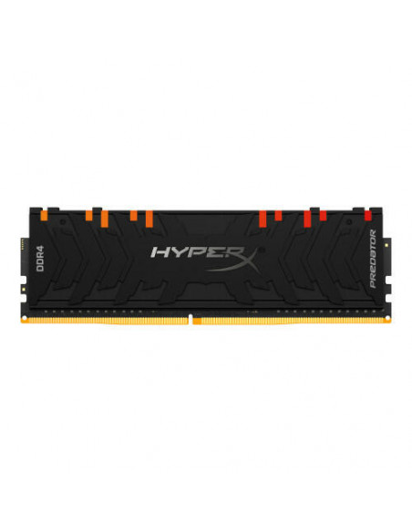 Caza a tu presa con un estilo RGB impresionante y suave.\n\nLa superrápida HyperX Predator DDR4 RGB es la actualización perfecta para el jugador que quiere el mejor rendimiento y el estilo brillante RGB para su sistema Intel o AMD. Los efectos de luz RGB dinámicos utilizan la tecnología de sincronización infrarroja de HyperX patentada para proporcionar efectos de iluminación suaves y sincronizado. Aumenta la velocidad de fotogramas, mejora la transmisión y haz que los mejores momentos vayan como el viento gracias a las velocidades de hasta 4600 MHz* junto con las rápidas latencias CL15-CL19. El difusor de calor de color negro elegante y agresivo, y la placa de circuito impreso negra a juego te permiten combatir el calor e infundir miedo en el corazón de los rivales. Se encuentra disponible en módulos individuales con capacidades de entre 8 GB y32 GB y kits de 2, 4, y 8 con capacidades de entre 16 GB y 256 GB. La Predator DDR4 RGB cuenta con la certificación de XMP de Intel con perfiles optimizados para los últimos conjuntos de chips de Intel; solo tienes que seleccionar el perfil ajustado a mano de la BIOS y lo tendrás todo listo. Probada al 100 % en fábrica a elevadas velocidades y cubierta por una garantía de por vida y más de 30 años de experiencia, la fiable Predator DDR4 RGB te proporciona un rendimiento extremo y la mayor tranquilidad, y tiene un aspecto impresionante.\n\n* Las especificaciones de los módulos de overclocking extremo indicados en esta página pueden sobrepasar las capacidades del hardware de tu sistema. Se requiere una selección detenida de todos los componentes del sistema (por ejemplo, CPU, placa base y unidad de fuente de alimentación) para garantizar que estos módulos funcionen como estaba previsto. \n\nEstos kits se prueban y verifican exhaustivamente de forma interna para que funcionen a la velocidad indicada. Como copia de seguridad, incluimos un segundo perfil XMP a una velocidad de reloj más lenta para que sea posible alcanzar un gran rendimiento si el sistema no es compatible con el perfil XMP incluido de máxima velocidad.\n\nSelecciona solo placas base que puedan alcanzar velocidades de DDR4-4000 y superiores. Consulta las Listas de proveedores calificados (QVL por sus siglas en inglés) para verificar la compatibilidad con la alta velocidad de Predator en la web del proveedor o en la lista de dispositivos con certificación XMP de Intel. Para la estabilidad de la memoria de alta velocidad se requiere un sistema de refrigeración superior (CPU y caja). Se recomienda el uso de procesadores de las series X o K de Intel.
