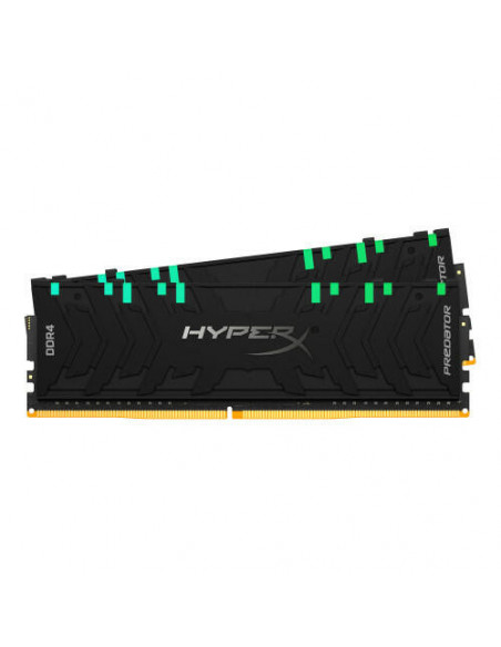 Caza a tu presa con un estilo RGB impresionante y suave.\n\nLa superrápida HyperX Predator DDR4 RGB es la actualización perfecta para el jugador que quiere el mejor rendimiento y el estilo brillante RGB para su sistema Intel o AMD. Los efectos de luz RGB dinámicos utilizan la tecnología de sincronización infrarroja de HyperX patentada para proporcionar efectos de iluminación suaves y sincronizado. Aumenta la velocidad de fotogramas, mejora la transmisión y haz que los mejores momentos vayan como el viento gracias a las velocidades de hasta 4600 MHz* junto con las rápidas latencias CL15-CL19. El difusor de calor de color negro elegante y agresivo, y la placa de circuito impreso negra a juego te permiten combatir el calor e infundir miedo en el corazón de los rivales. Se encuentra disponible en módulos individuales con capacidades de entre 8 GB y32 GB y kits de 2, 4, y 8 con capacidades de entre 16 GB y 256 GB. La Predator DDR4 RGB cuenta con la certificación de XMP de Intel con perfiles optimizados para los últimos conjuntos de chips de Intel; solo tienes que seleccionar el perfil ajustado a mano de la BIOS y lo tendrás todo listo. Probada al 100 % en fábrica a elevadas velocidades y cubierta por una garantía de por vida y más de 30 años de experiencia, la fiable Predator DDR4 RGB te proporciona un rendimiento extremo y la mayor tranquilidad, y tiene un aspecto impresionante.\n\n* Las especificaciones de los módulos de overclocking extremo indicados en esta página pueden sobrepasar las capacidades del hardware de tu sistema. Se requiere una selección detenida de todos los componentes del sistema (por ejemplo, CPU, placa base y unidad de fuente de alimentación) para garantizar que estos módulos funcionen como estaba previsto. \n\nEstos kits se prueban y verifican exhaustivamente de forma interna para que funcionen a la velocidad indicada. Como copia de seguridad, incluimos un segundo perfil XMP a una velocidad de reloj más lenta para que sea posible alcanzar un gran rendimiento si el sistema no es compatible con el perfil XMP incluido de máxima velocidad.\n\nSelecciona solo placas base que puedan alcanzar velocidades de DDR4-4000 y superiores. Consulta las Listas de proveedores calificados (QVL por sus siglas en inglés) para verificar la compatibilidad con la alta velocidad de Predator en la web del proveedor o en la lista de dispositivos con certificación XMP de Intel. Para la estabilidad de la memoria de alta velocidad se requiere un sistema de refrigeración superior (CPU y caja). Se recomienda el uso de procesadores de las series X o K de Intel.
