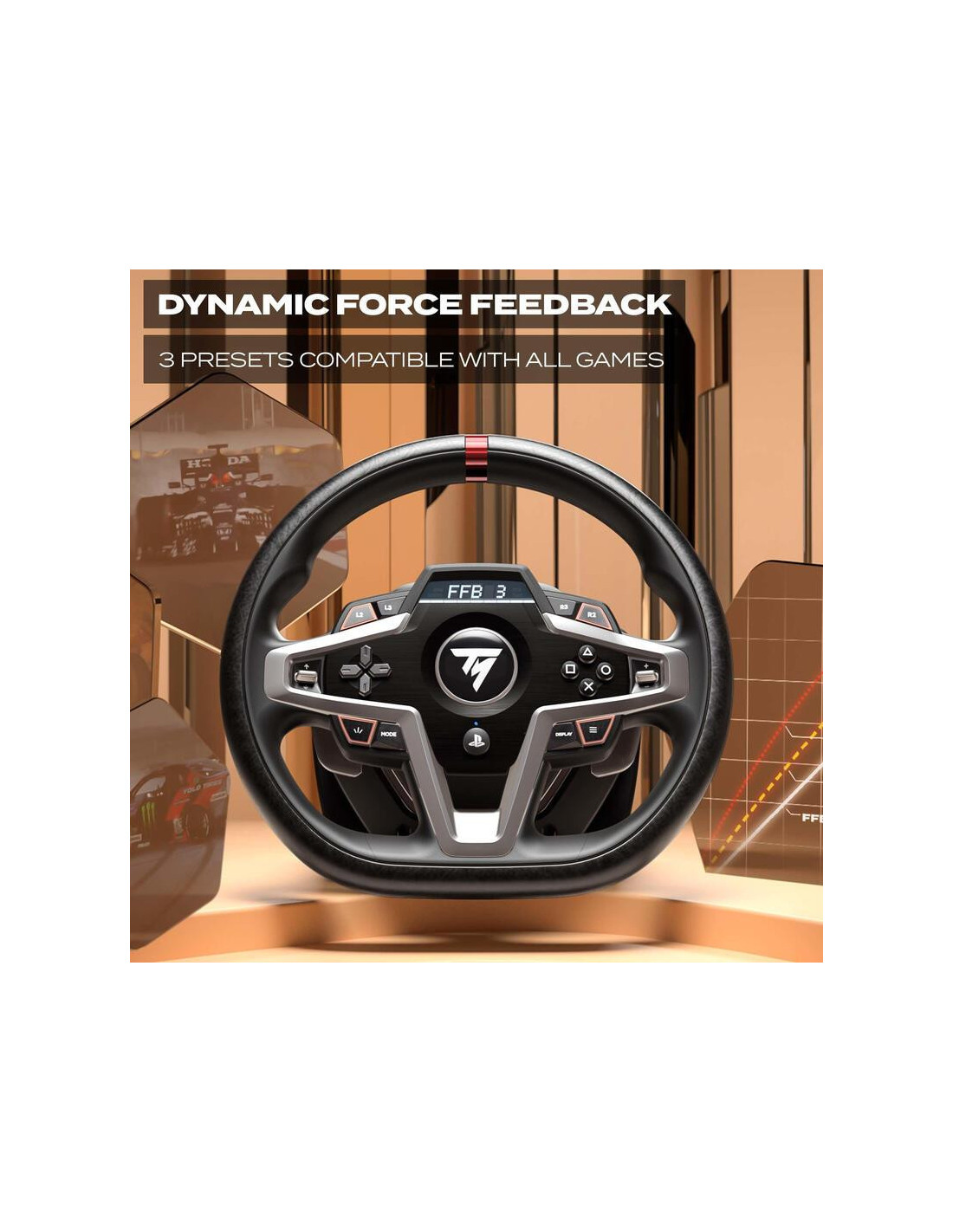 O volante de corrida Thrustmaster T-248 oferece uma experiência de jogo imersiva e realista. Compatível com PC, PS4 e PS5, possui feedback de força, ecrã LCD e pedais magnéticos. Uma escolha excecional para entusiastas de simulação de condução.