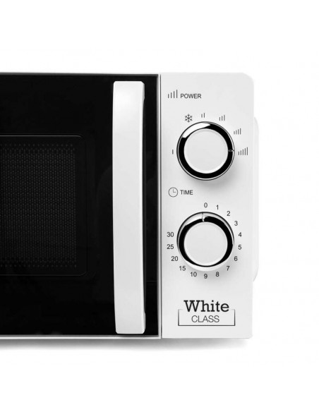 A função de descongelamento facilita a preparação de refeições congeladas, enquanto o temporizador de 30 minutos permite controlar o tempo de cozedura com precisão. A sua porta com fecho de segurança garante a proteção durante o uso e a sua superfície interior é fácil de limpar e manter. O design elegante e simples em branco combina com a maioria das cozinhas.
