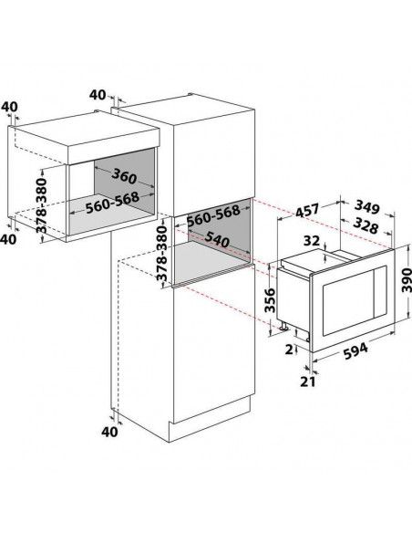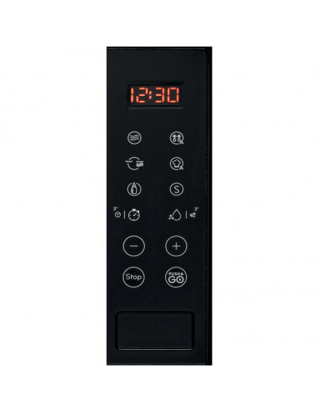 Características adicionais, como a luz interior e a bandeja giratória de 24,5 cm, melhoram ainda mais a conveniência e o conforto de uso. O sistema de segurança com bloqueio para crianças garante a segurança na sua cozinha. A instalação é facilitada pelas dimensões precisas do compartimento de instalação (56,8cm de largura, 54cm de profundidade e 38cm de altura).