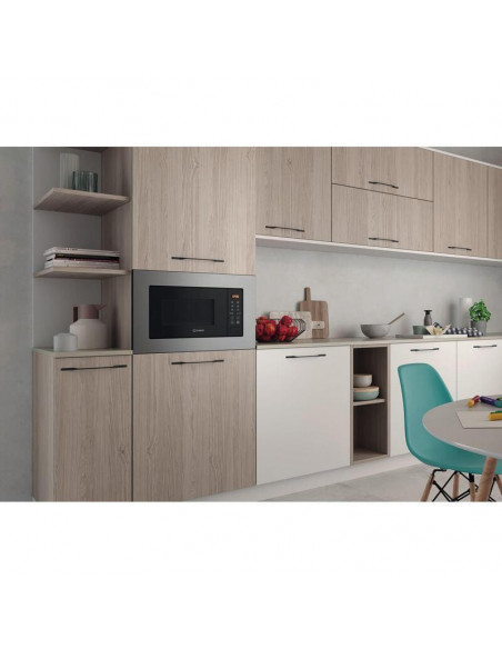 O Micro-ondas Indesit MWI120GX é uma solução elegante e eficiente para a sua cozinha. Este modelo encastrável integra-se perfeitamente em qualquer ambiente, oferecendo um design moderno em aço inoxidável. Com uma capacidade de 20 litros e uma potência de 800W, este micro-ondas é ideal para aquecer e cozinhar refeições rápidas e convenientes.