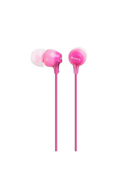 Auscultadores Sony MDREX15LPPI.AE, de cor rosa, leves e confortáveis. Sem microfone integrado. Conector jack de 3,5mm. Ideais para uso diário.