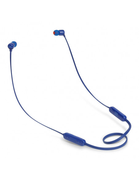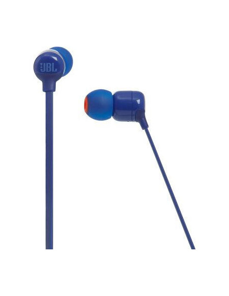 JBL T110BT. Tipo de produto: Conjunto de auscultadores e microfone acoplado, Estilo de vestir: Intra-auditivo, Cor da caixa: Azul. Tecnologia da conectividade: Sem fios/Wireless, Conetor USB: Micro-USB, Perfis Bluetooth: A2DP,AVRCP,HFP,HSP. Acoplamento do ouvido: Intra-aural, Frequência dos auscultadores: 20 - 20000 Hz, Impedância: 16 ?. Tempo de reprodução de música: 6 h, Tempo de conversação: 6 h, Tecnologia da bateria: Polímero de lítio (LiPo). Peso do produto: 16,2 g